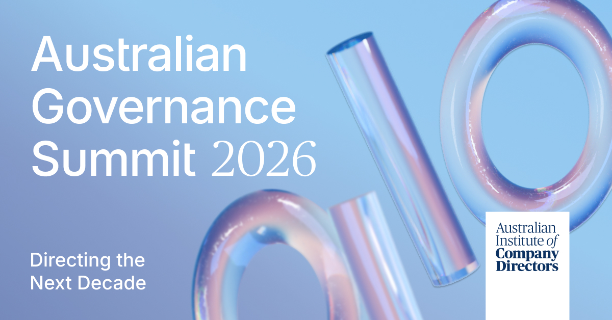 2026 marks 10 years of the Australian Governance Summit (AGS26) and the start of a new decade in leadership. Presented by the Australian Institute of Company Directors (AICD), AGS26 brings together the nation’s leading governance experts, regulators, and business leaders to set the direction for the next decade of governance.
